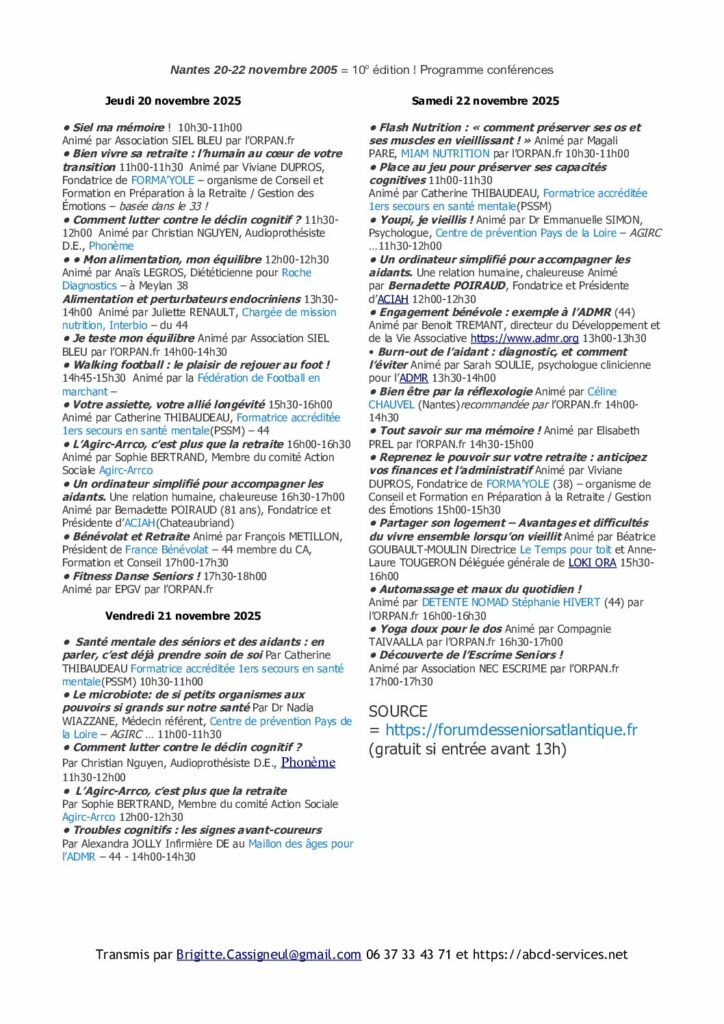 • Youpi, je vieillis ! Animé par Dr Emmanuelle SIMON, Psychologue, Centre de prévention Pays de la Loire – AGIRC …11h30-12h00